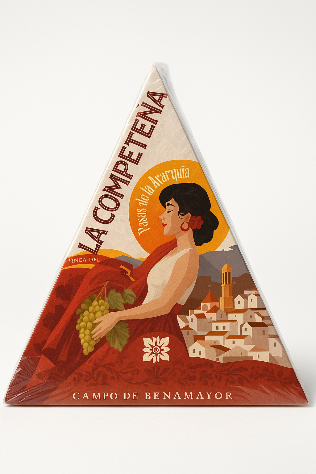 Présentés dans un élégant emballage triangulaire illustré dans le style andalou, ils reflètent la tradition et la passion du terroir espagnol.