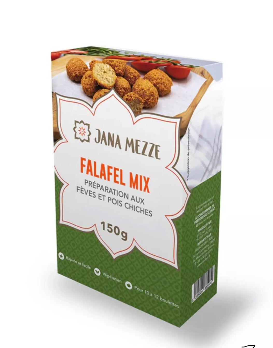 Préparation sèche composée d’un mélange de fèves et pois chiches moulus, relevé d’un assortiment authentique d’épices orientales et d’herbes fraîches séchées. Ce mélange permet de réaliser facilement des falafels maison à la texture idéale : croustillants à l’extérieur, moelleux et savoureux à l’intérieur, avec une saveur riche typique du Levant.