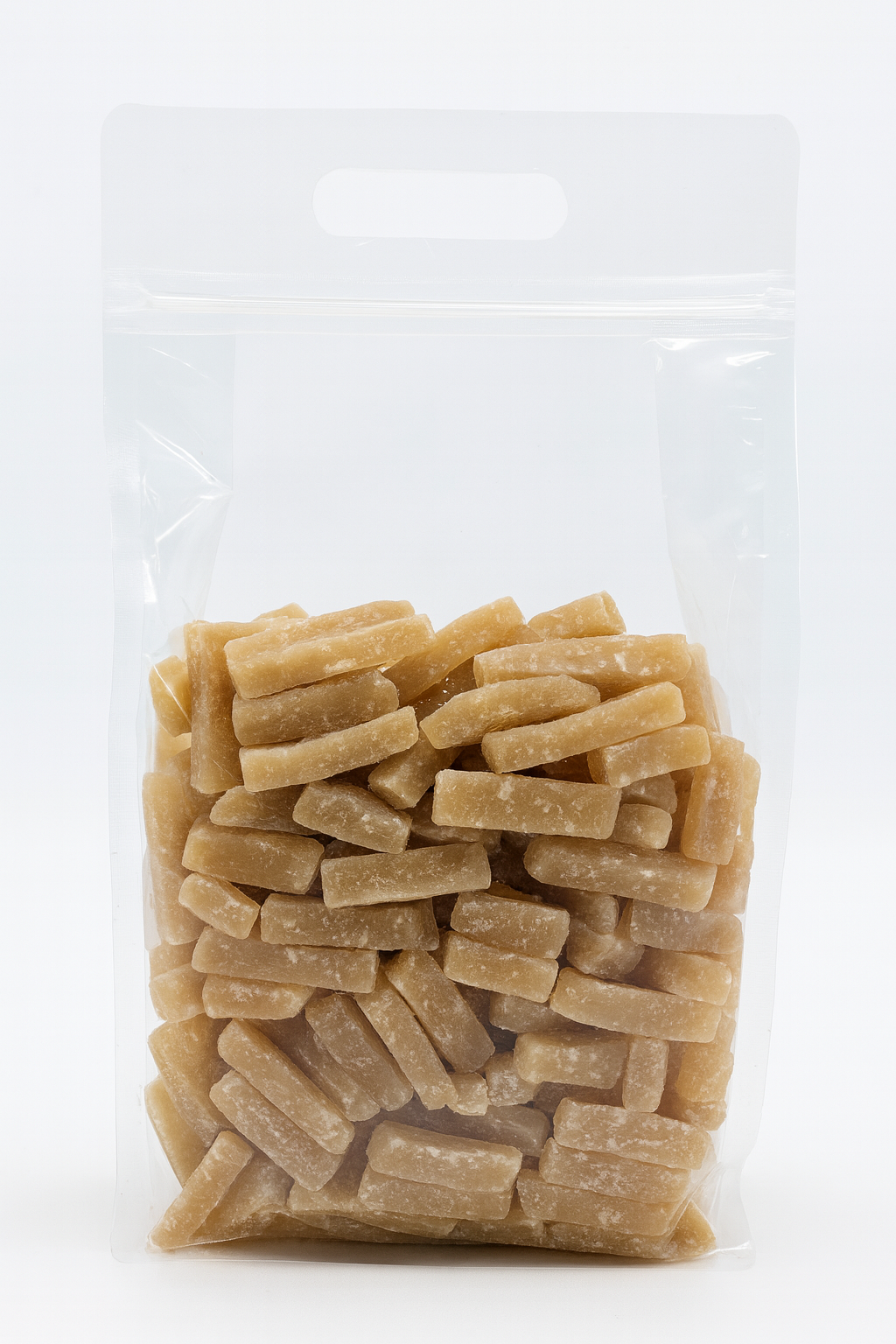 Des bâtonnets de gingembre tendre, confits avec soin, sans enrobage de sucre cristallisé. Leur texture moelleuse et leur goût à la fois piquant et sucré en font une gourmandise raffinée et authentique. À déguster tel quel, à utiliser dans les pâtisseries, ou pour relever vos plats sucrés-salés et infusions.