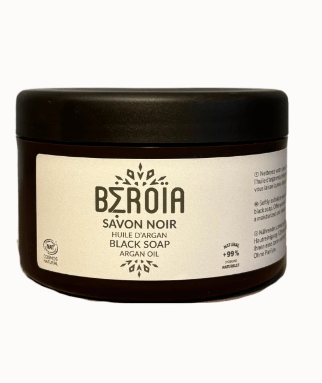 Le savon noir Beroia, fabriqué à base d’huile d’olive, est un produit traditionnel du rituel oriental de beauté. Sa texture pâteuse et onctueuse nettoie la peau en profondeur, élimine les cellules mortes et prépare idéalement à un gommage au gant kessa.
