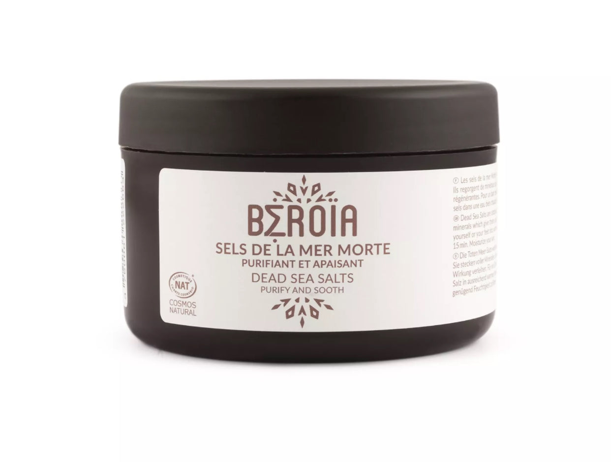 Le sel de la Mer Morte Beroia est récolté directement des rives de la mer la plus salée au monde. Riche en magnésium, calcium, potassium et autres oligo-éléments, il est utilisé depuis des siècles pour ses vertus apaisantes, purifiantes et détoxifiantes.